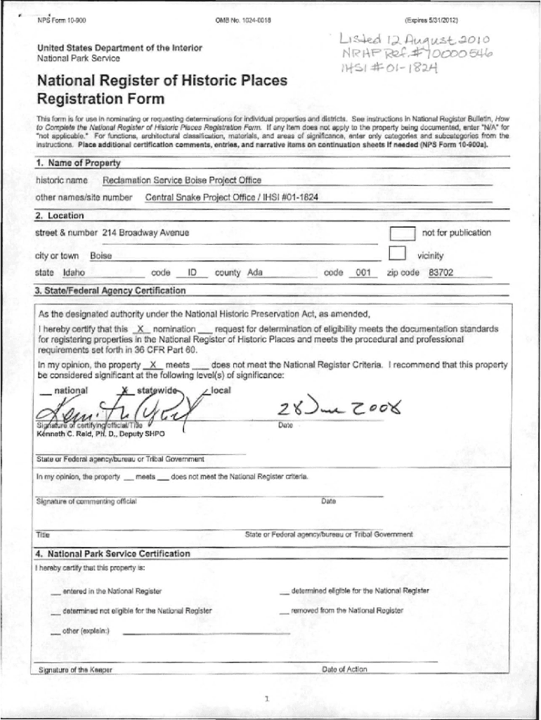 Get the free National Register of Historic Places Registration Form 4. .. ... - history idaho