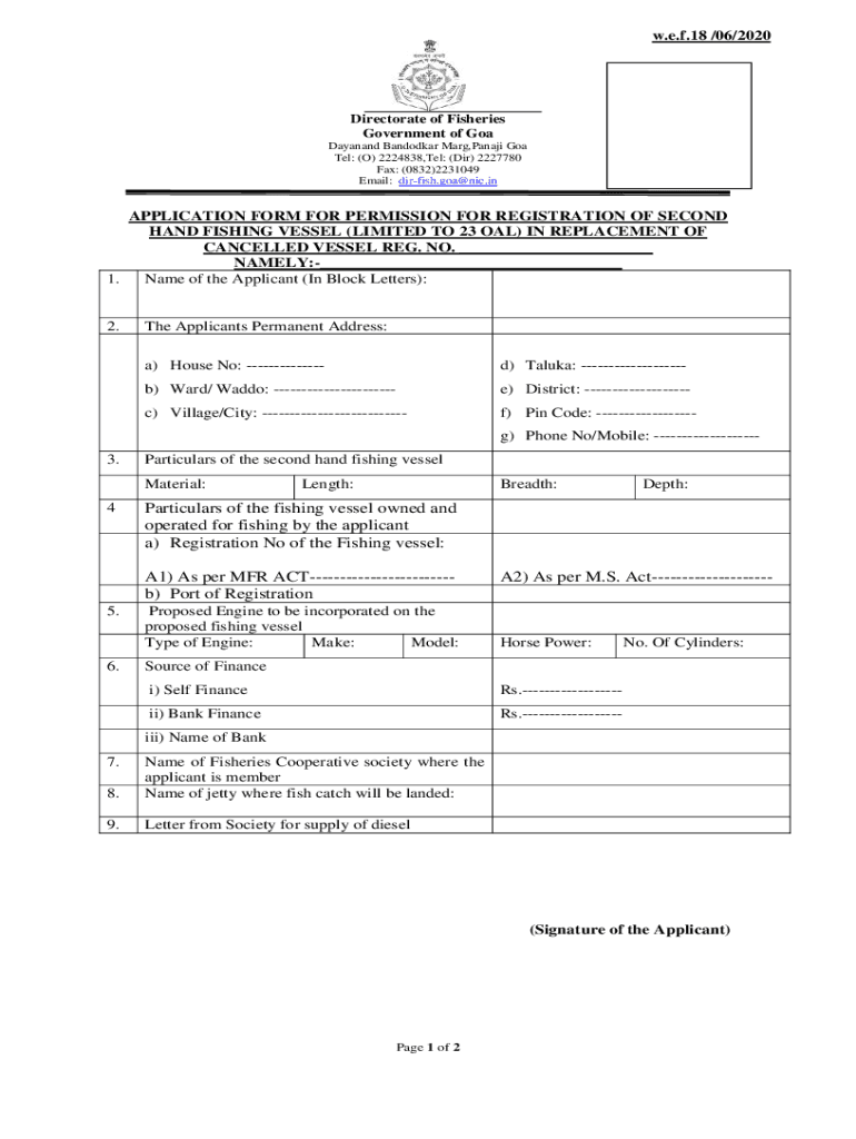 Get the free APPLICATION FORM FOR CHANGE IN ENGINE OF FISHING ...