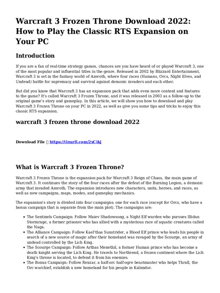 Warcraft 3 Frozen Throne Download 2022: How to Play the Classic RTS Expansion on Your PC Introduction If you are a fan of real-time strategy games, chances are you have heard of or played Warcraft