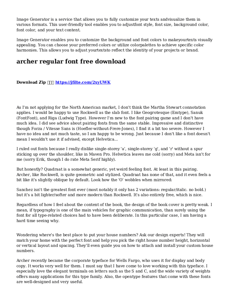 Anyone who wishes to use the Archer regular font in their design projects may download it.