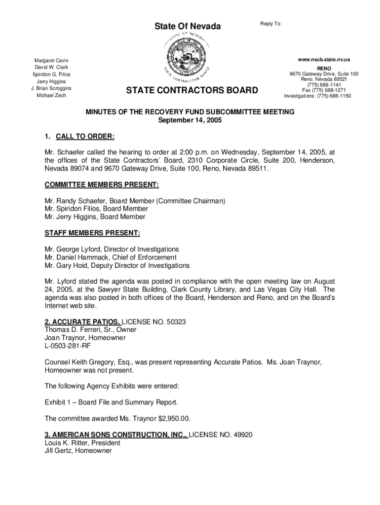 Get the free Nevada State Contractors Board Residential Recovery fund.