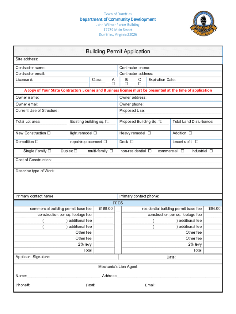 Humphries, Virginia 22026Building Permit Application