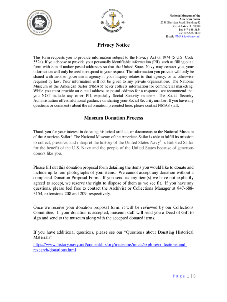 To fill out a donation proposal, one must provide detailed descriptions of the artifacts, the purpose of the donation, the condition of the items, and any relevant provenance information. Additional details may also include the intended recipient organization and potential uses for the artifacts.