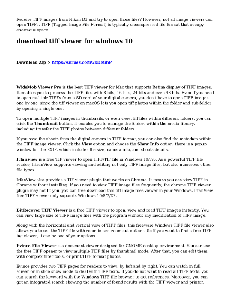 open Tiffs. TIFF (Tagged Image File Format) is typically uncompressed file format that occupy