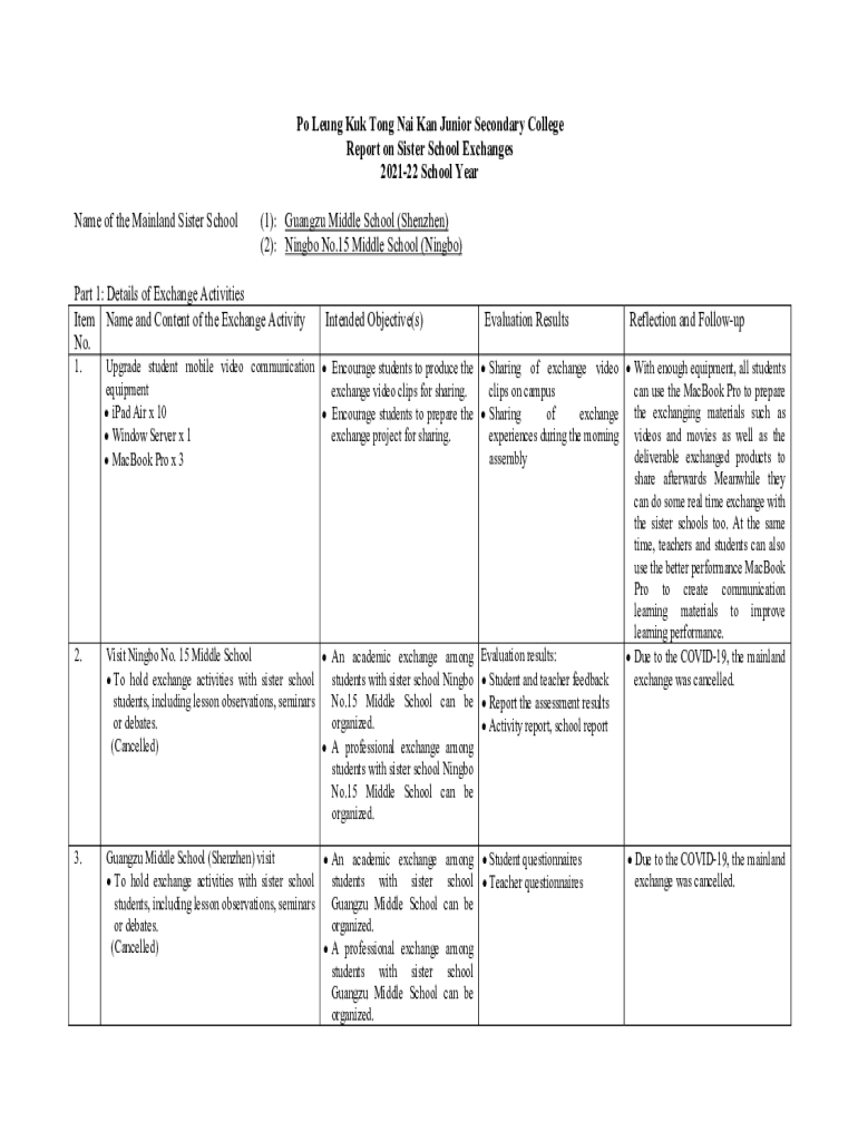 Name of the Mainland Sister School(1): Guangzhou Middle School (Shenzhen)