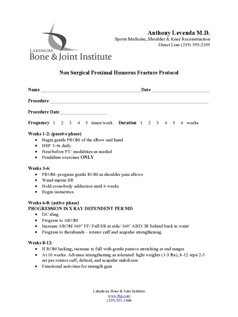 Direct Line (219) 3952109Non Surgical Proximal Humerus Fracture Protocol