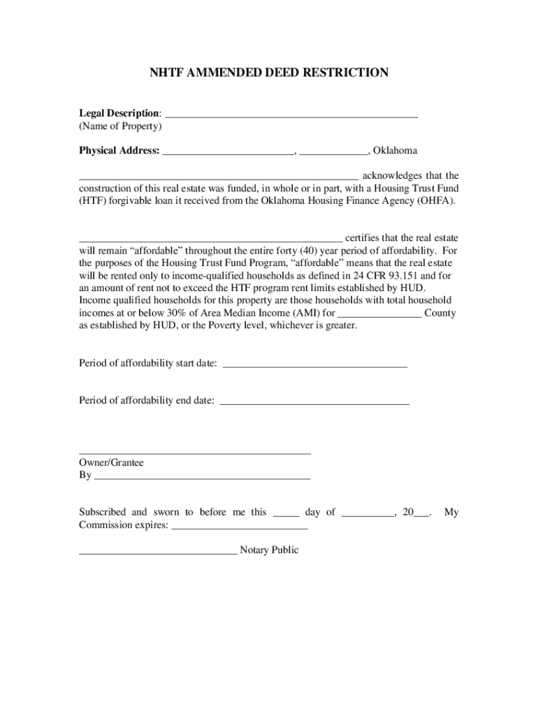 Nhtf Ammended Deed Restriction is not the form you're looking for?Search for another form here.