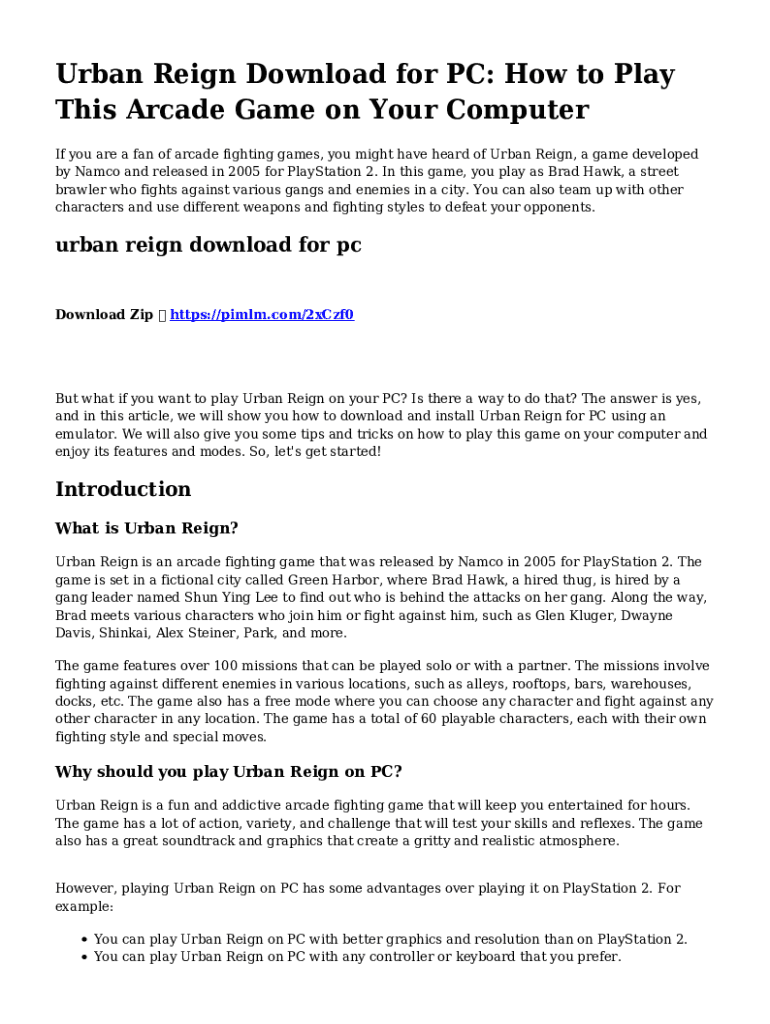 If you are a fan of arcade fighting games, you might have heard of Urban Reign, a game developed