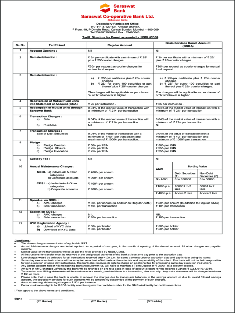 Get the free Tariff Acceptance Form for Demat accounts for NSDL/ ...