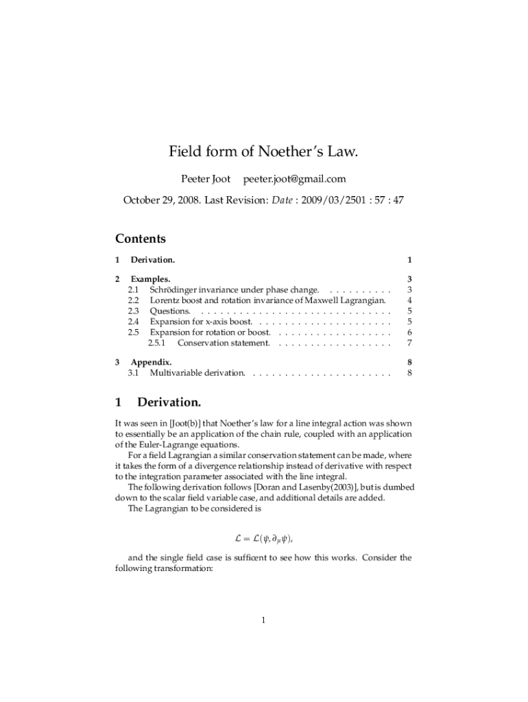 Get the free Field form of Noether's Law. - Peeter Joot's Blog