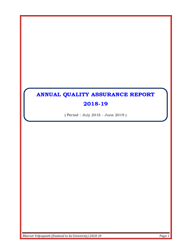 ANNUAL QUALITY ASSURANCE REPORT 201819 ( Period : July 2018 June 2019 )Bharati Vidyapeeth (Deemed to be University) 201819Page 1The Annual Quality Assurance Report (AQAR) of the IQAC (For Universities)