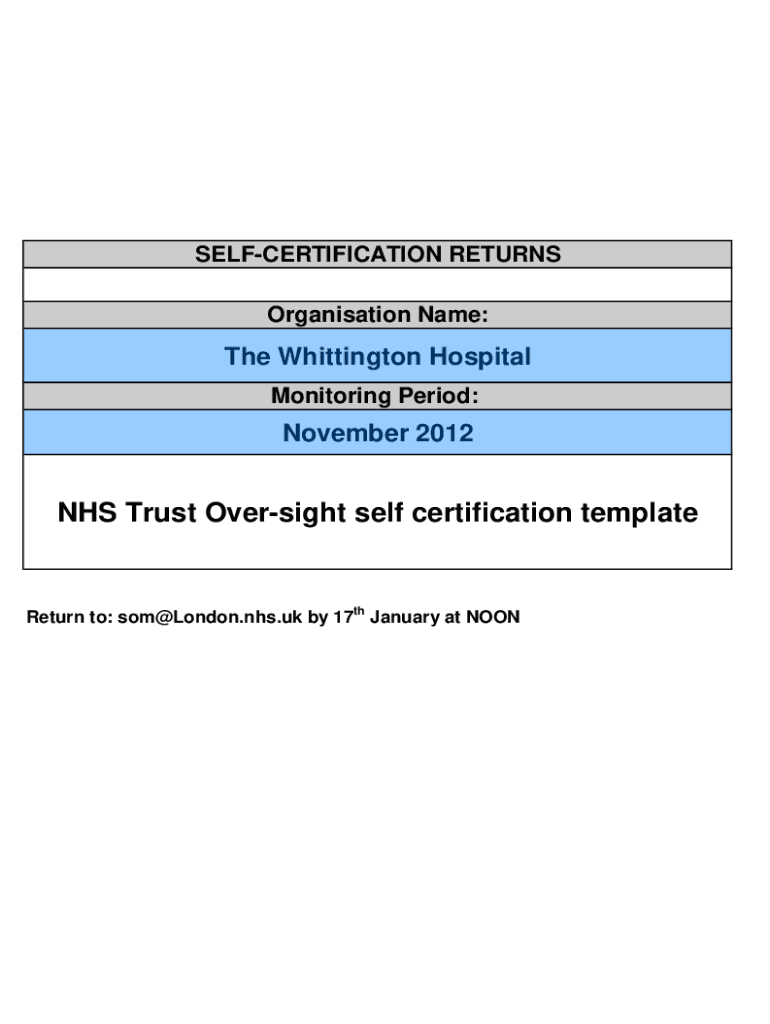 Monitoring Period:November 2012NHS Trust Oversight self certification templateReturn to: som@London.nhs.uk by 17th January at NOON