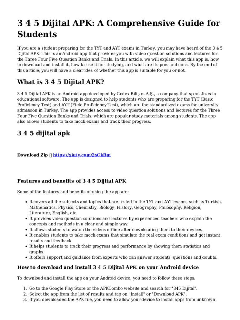 3 4 5 Dijital APK: A Comprehensive Guide for Students If you are a student preparing for the TYT and AYT exams in Turkey, you may have heard of the 3 4 5 Dijital APK. This is an Android app that provides