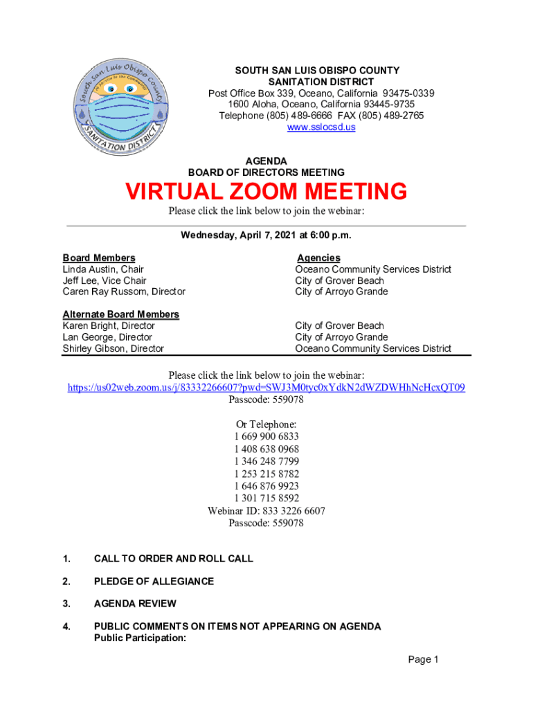 SOUTH SAN LUIS OBISPO COUNTY SANITATION DISTRICT Post Office Box 339, Oceano, California 934750339 1600 Aloha, Oceano, California 934459735 Telephone (805) 4896666 FAX (805) 4892765 www.sslocsd.us