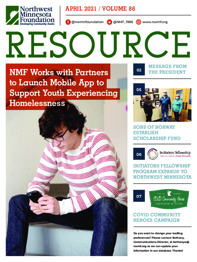 APRIL 2021 / VOLUME 86 @nwmnfoundation@NMF_1986NMF Works with Partners to Launch Mobile App to Support Youth Experiencing Homelessnesswww.nwmf.org02MESSAGE FROM THE PRESIDENT05SONS OF NORWAY ESTABLISH