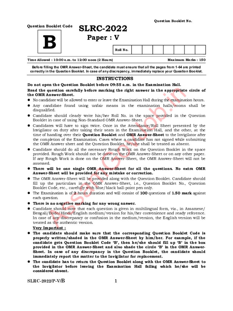 Question Booklet No. Question Booklet CodeBSLRC2022