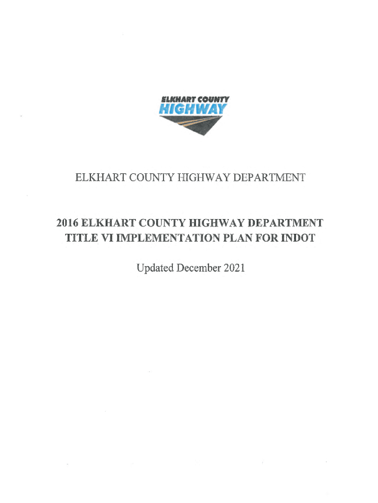 ILART COUNTYHIGH WAY \"\"111111114rEL ( TAR COYGHWAY DE AR 120M ELKT:ART COU TY 7LLIGIEWAY DEPA \' THEVT IflLE Vii 1V1f1PLEM TfiTATI\'ilON PLAN YOR INDOii Updated December 2021ELKHART COUNTY HIGHWAY