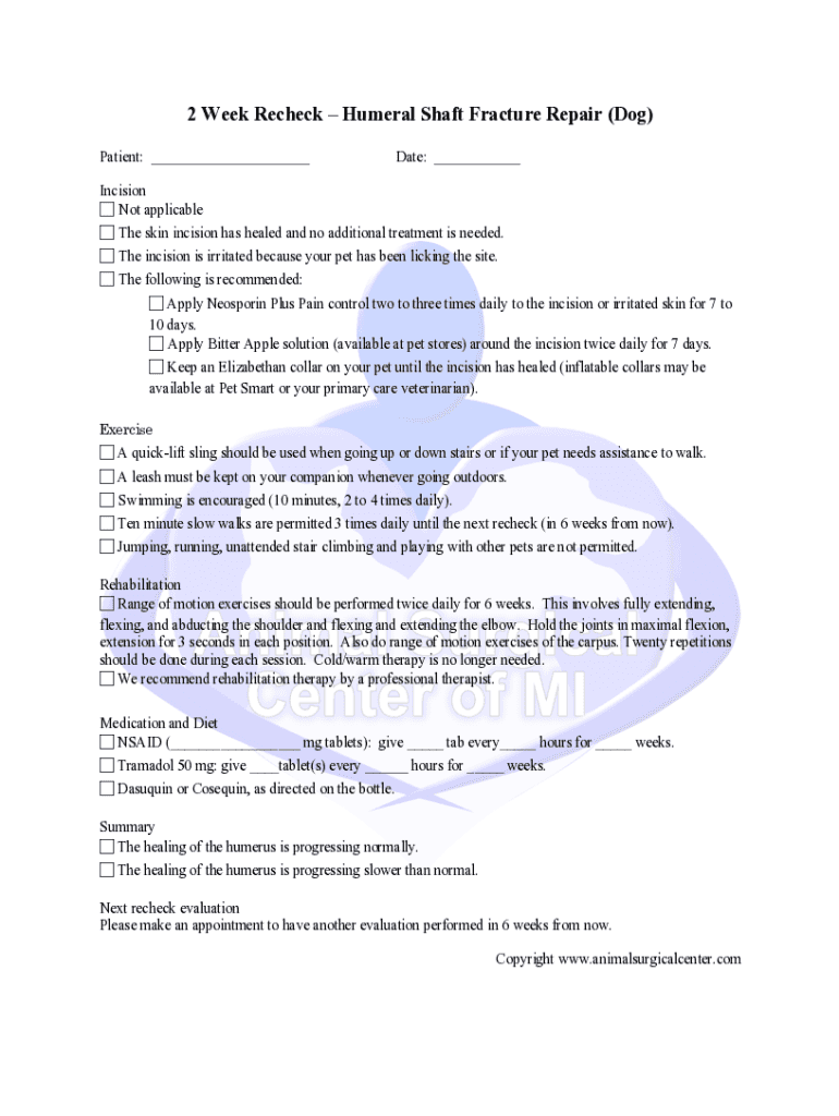2 Week Recheck Humeral Shaft Fracture Repair (Dog)