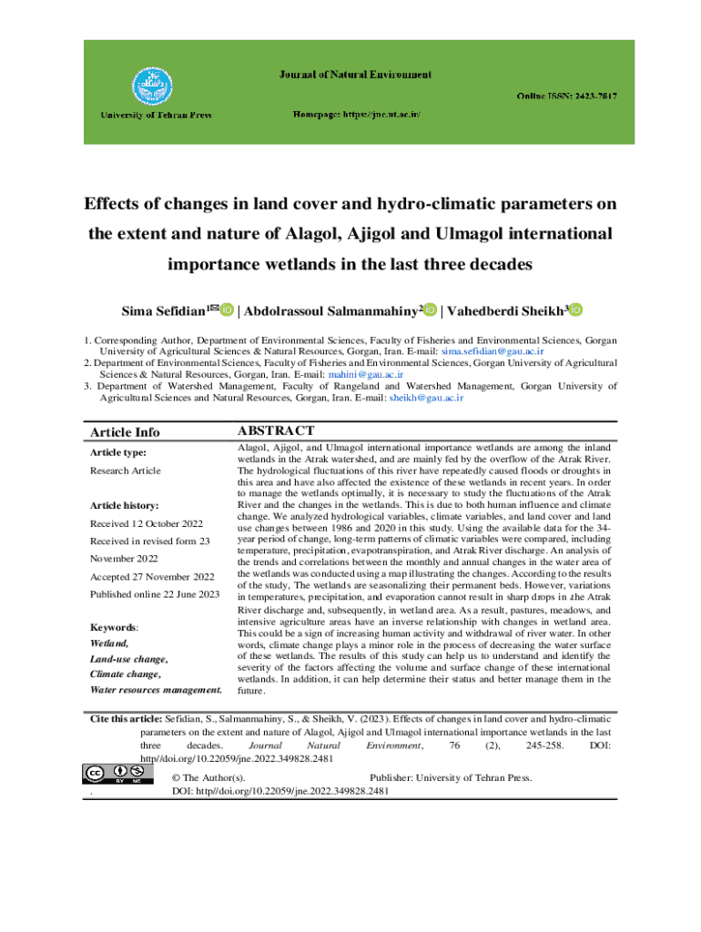 Effects of changes in land cover and hydroclimatic parameters on the extent and nature of Alagol, Ajigol and Ulmagol international importance wetlands in the last three decades Sima Sefidian1| Abdolrassoul