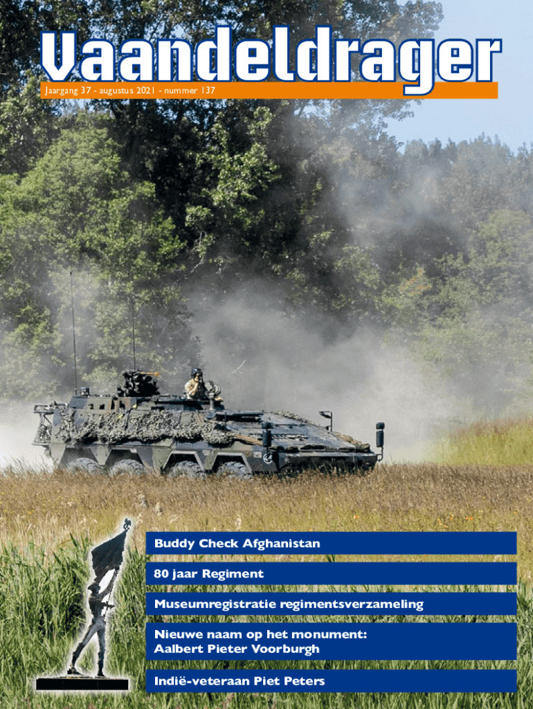 Vaandeldrager Jaargang 37 augustus 2021 nummer 137Buddy Check Afghanistan 80 jaar Regiment Museumregistratie regimentsverzameling Nieuwe naam op het monument: Aalbert Pieter Voorburgh Indiveteraan
