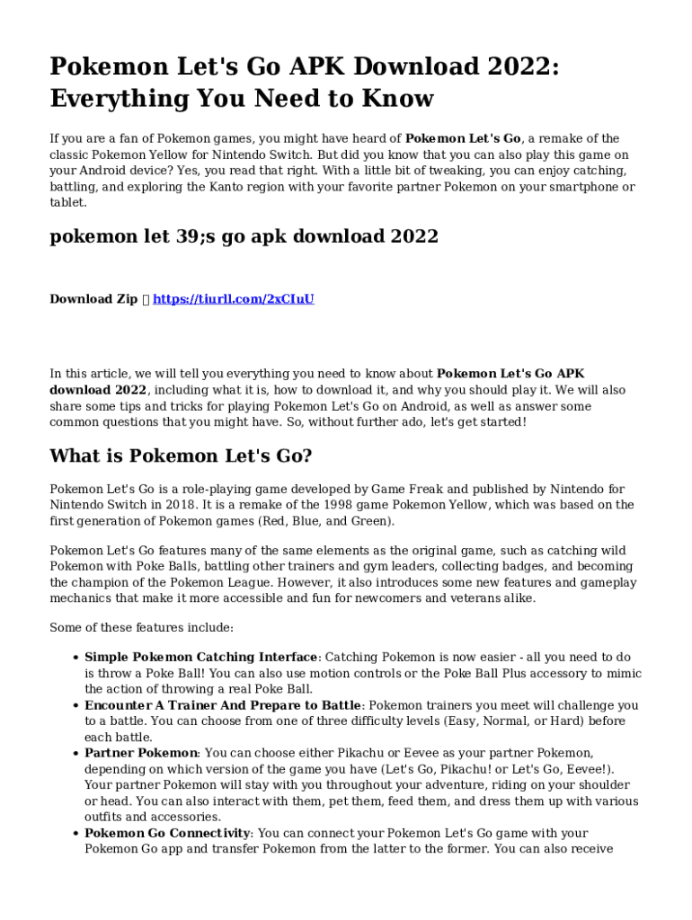 Pokémon Let\'s Go APK Download 2022: