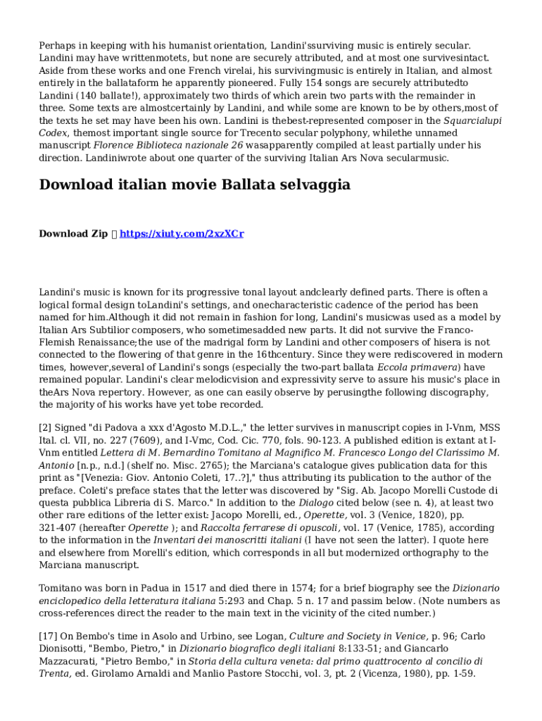 With pdfFiller, an all-in-one online tool for professional document management, it's easy to fill out documents. Over 25 million fillable forms are available on our website, and you can find the francesco landini works list in a matter of seconds. Open it right away and start making it your own with help from advanced editing tools.