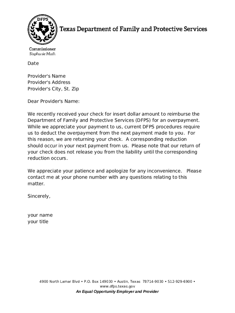 Template Returning a refund check to the provider instructions