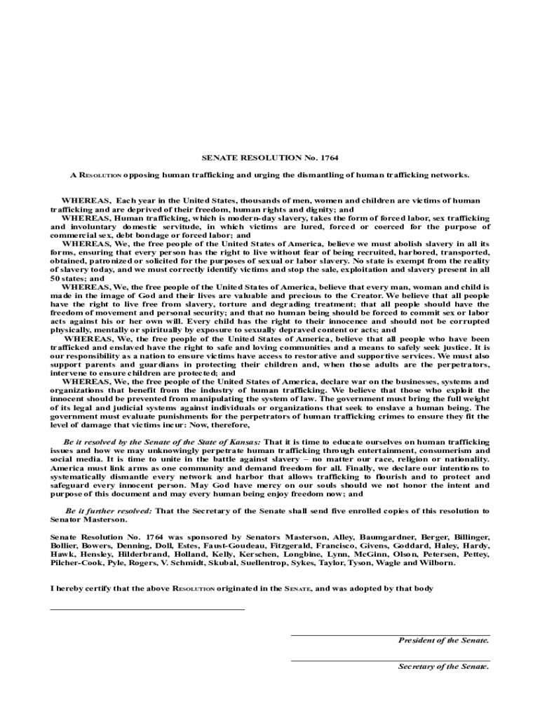 A RESOLUTION opposing human trafficking and urging the dismantling of human trafficking networks.