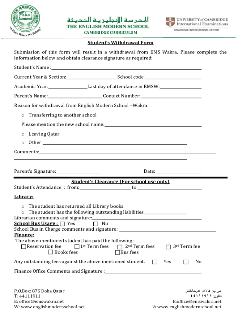 CAMBRIDGE CURRICULUMStudents Withdrawal Form