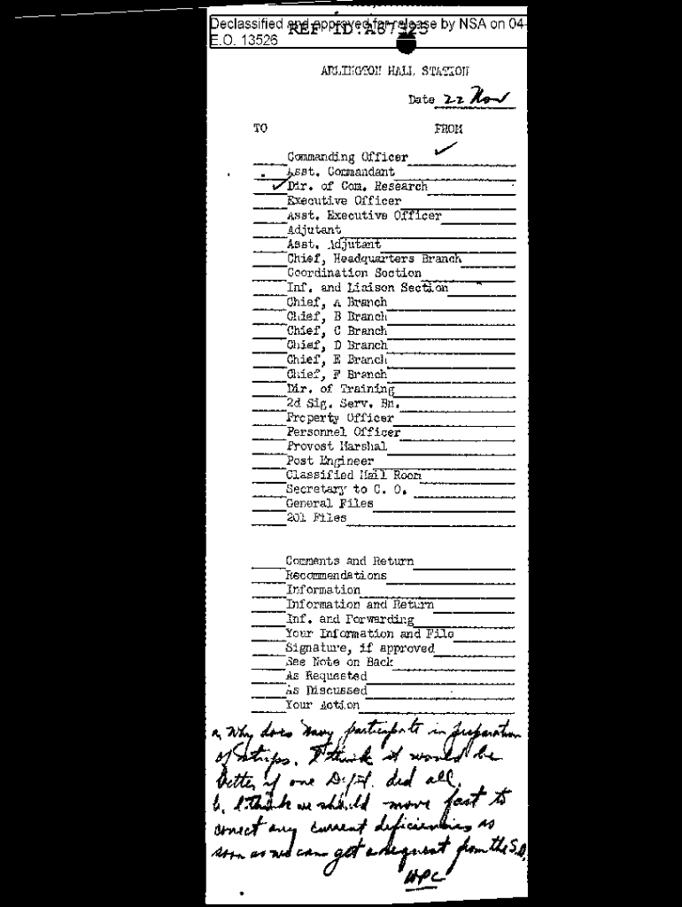 Get the free NOTES ON CONFERENCE HELD 18 NOVEMBER 1943 BETWEEN REPRESENTATIVES OF THE SIGNAL SECU...