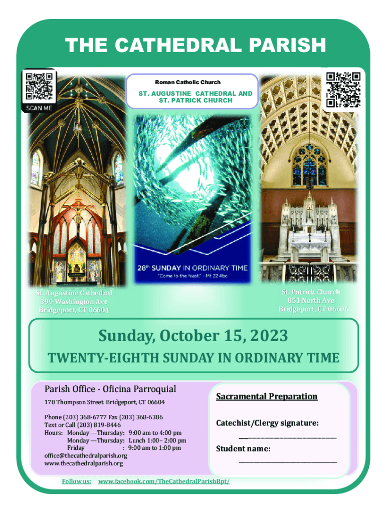 THE CATHEDRAL PARISH Roman Catholic Church ST. AUGUSTINE CATHEDRAL AND ST. PATRICK CHURCH St. Patrick Church 851 North Ave Bridgeport, CT 06606St. Augustine Cathedral 399 Washington Ave Bridgeport,