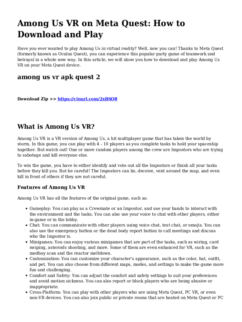 Among Us VR on Meta Quest: How to Download and Play Have you ever wanted to play Among Us in virtual reality? Well, now you can! Thanks to Meta Quest (formerly known as Oculus Quest), you can experience