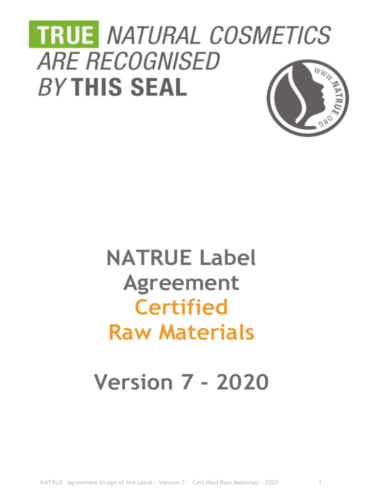 Version 7 2020NATRUE Agreement Usage of the Label Version 7 Certified Raw Materials 20201TABLE of CONTENTS
