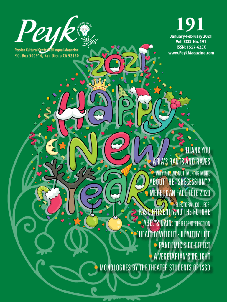 191JanuaryFebruary 2021 Vol. XXIX No. 191 ISSN: 1557623X www.PeykMagazine.com THANK YOU ARIAS RANTS AND RAVES WHY ARE WE NOT TALKING MORE ABOUT THE SHECESSION? MEHREGAN FALL FTE 2020 ELECTORAL COLLEGE:PAST,
