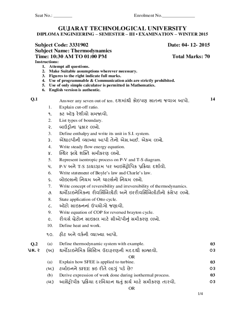 Seat No.: ___Enrollment No.___GUJARAT TECHNOLOGICAL UNIVERSITY