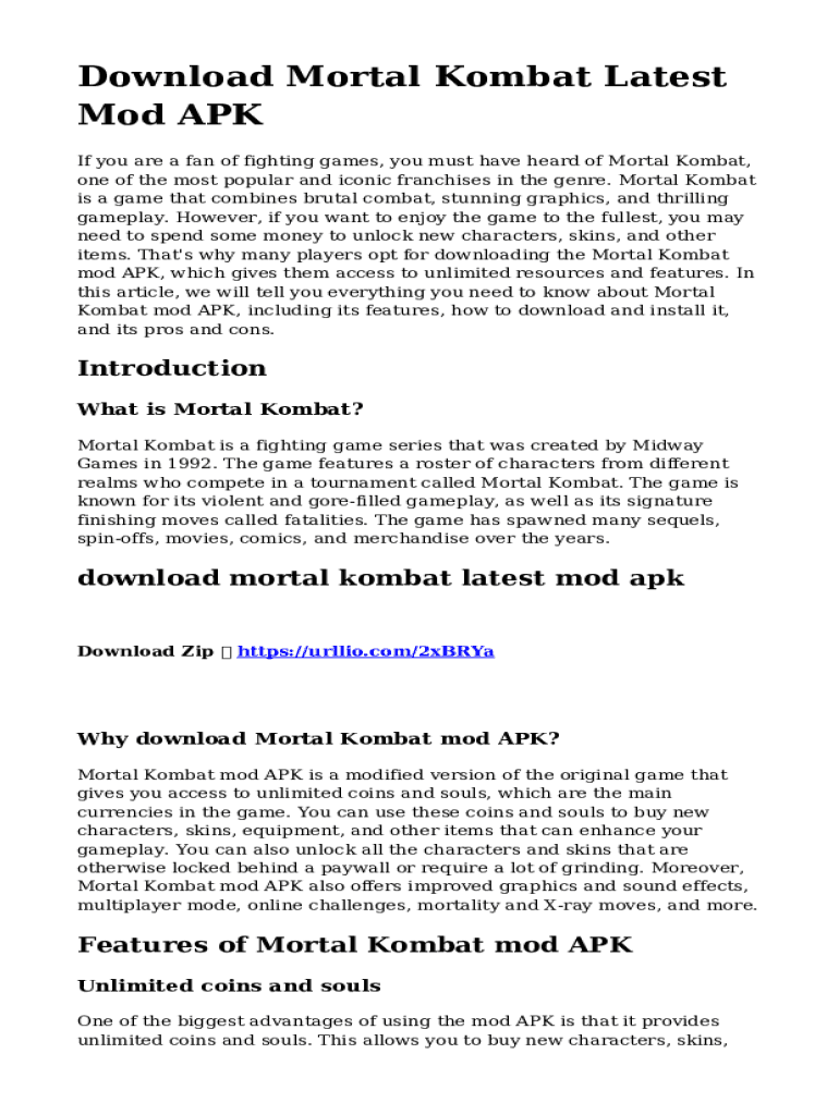 Download Mortal Kombat Latest Mod APK If you are a fan of fighting games, you must have heard of Mortal Kombat, one of the most popular and iconic franchises in the genre. Mortal Kombat is a game