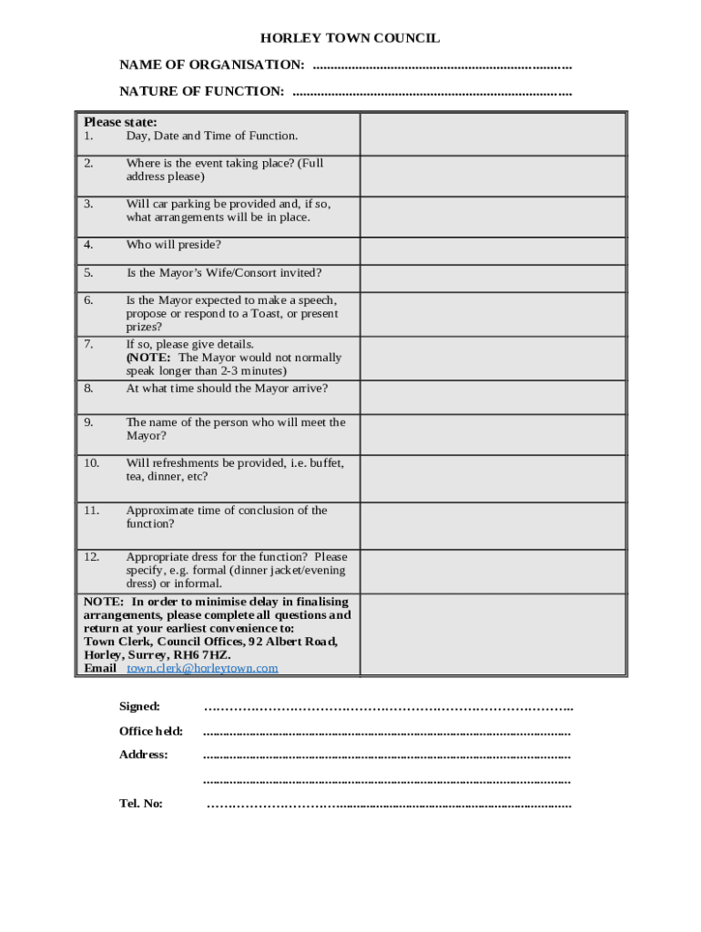 The Mayor's Engagement is a document that should be submitted to the specific address to provide some info. It needs to be completed and signed, which is possible in hard copy, or with a certain software like PDFfiller. It helps to fill out any PDF or Word document directly in your browser, customize it depending on your purposes and put a legally-binding electronic signature. Once after completion, the user can send the Mayor's Engagement to the appropriate receiver, or multiple recipients via email or fax. The template is printable too due to PDFfiller feature and options offered for printing out adjustment. In both electronic and physical appearance, your form should have a clean and professional look. Also you can turn it into a template to use later, there's no need to create a new file from scratch. All that needed is to amend the ready document.