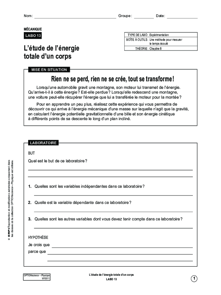 Obtenir le gratuit L'tude de l'nergie totale d'un corps Rien ne se perd, ...