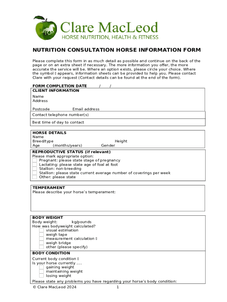Instructions for the form Nutrition consultation pdf: Fill out & sign online