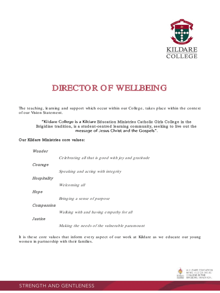 DIRECTOR OF WELLBEING The teaching, learning and support which occur within our College, takes place within the context of our Vision Statement. Education Ministries Catholic Girls College in the