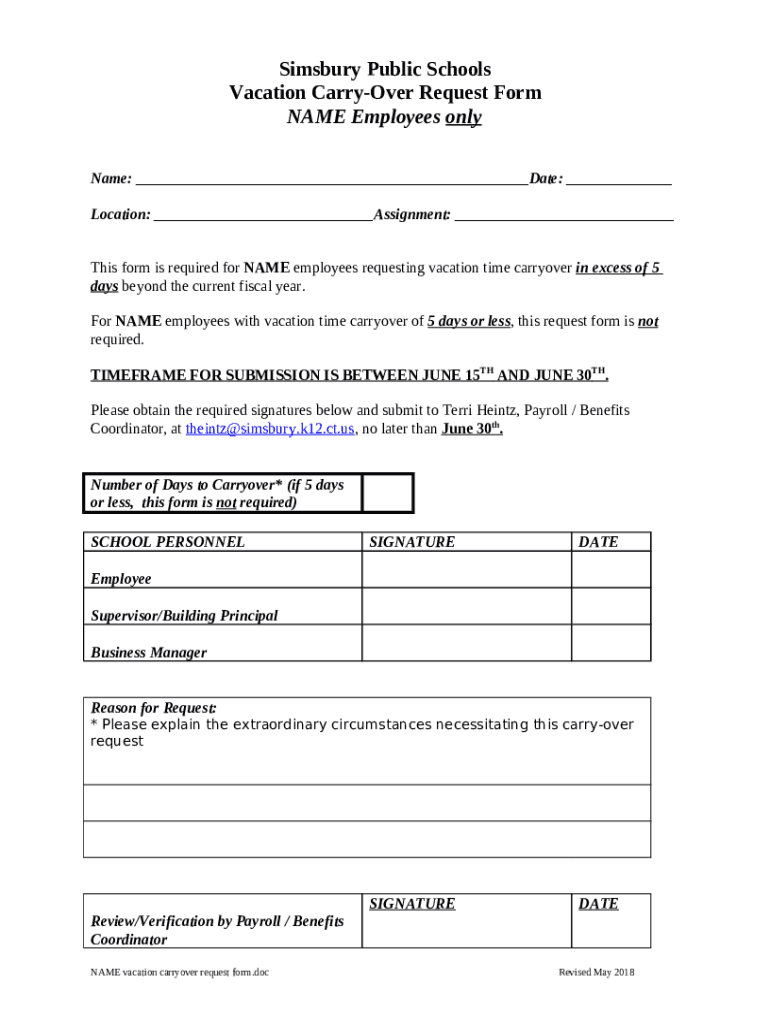 What is Simsbury Public Schools Vacation Time Carry-over ... Form?