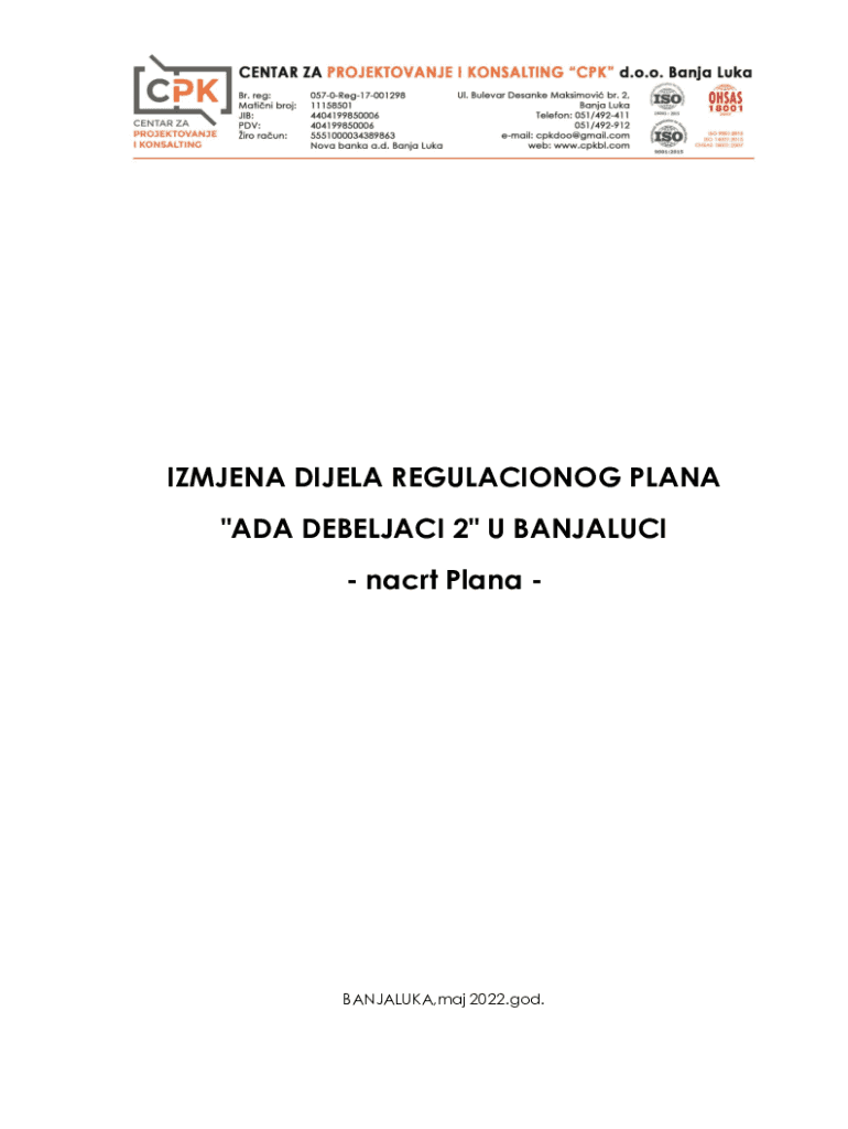 Get the free Na javnom uvidu nacrti tri regulaciona plana