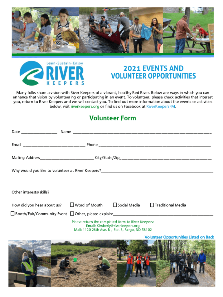 2021 EVENTS AND Many folks share a vision with River Keepers of a vibrant, healthy Red River. Below are ways in which you can enhance that vision by volunteering or participating in an event. To volunteer,