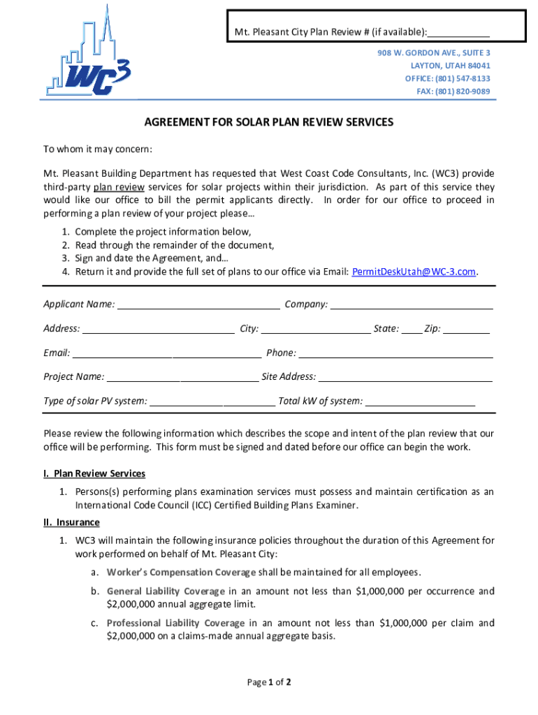 FAX: (801) 8209089AGREEMENT FOR SOLAR PLAN REVIEW SERVICES