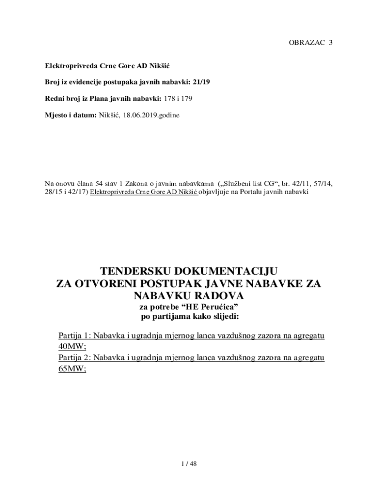 OBRAZAC 3 Elektroprivreda Crne Gore AD Niki Broj iz evidencije postupaka javnih nabavki: 21/19 Redni broj iz Plana javnih nabavki: 178 i 179 Mjesto i datum: Niki, 18.06.2019.godineNa onovu lana 54