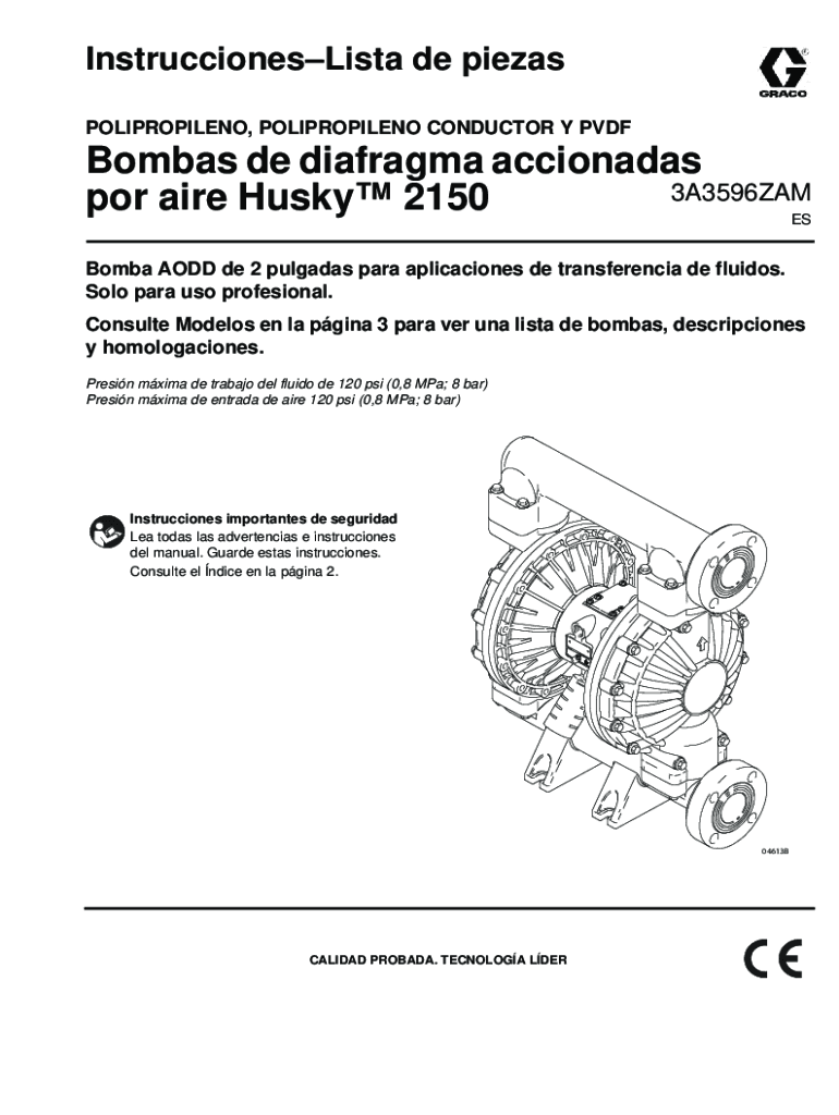 InstruccionesLista de piezas POLIPROPILENO, POLIPROPILENO CONDUCTOR Y PVDFBombas de diafragma accionadas 3A3596ZAM por aire Husky 2150 ESBomba AODD de 2 pulgadas para aplicaciones de transferencia