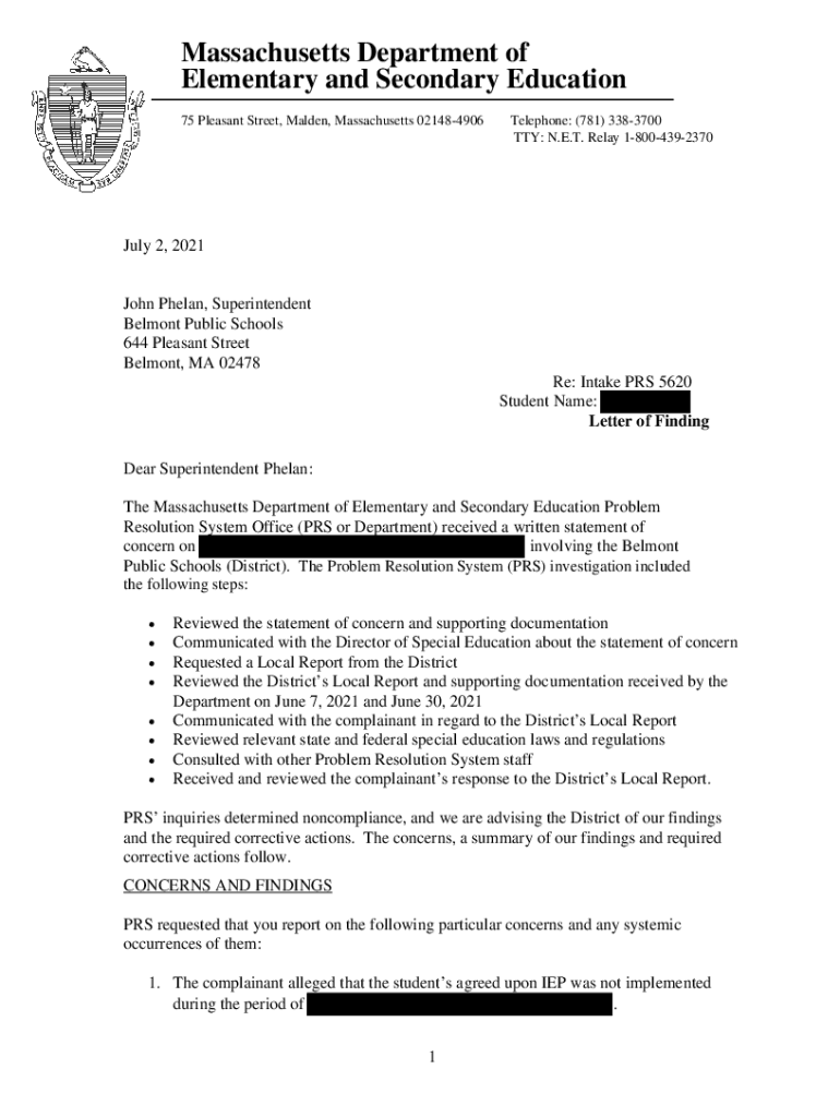 Massachusetts Department of Elementary and Secondary Education 75 Pleasant Street, Malden, Massachusetts 021484906Telephone: (781) 3383700 TTY: N.E.T. Relay 18004392370July 2, 2021John Phelan, Superintendent