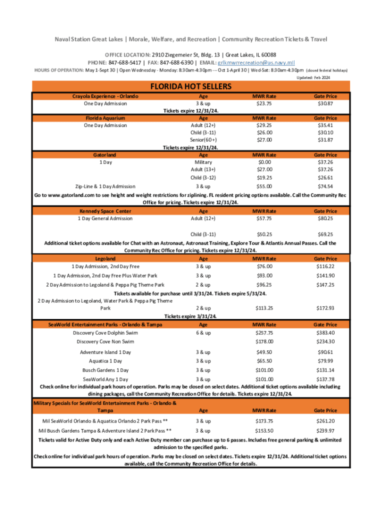 Naval Station Great Lakes | Morale, Welfare, and Recreation | Community Recreation Tickets & Travel