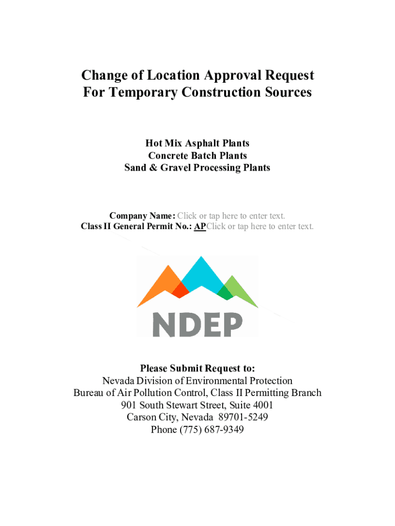Get the free Form CenterTemporary Batch Plant Permit - ndep nv