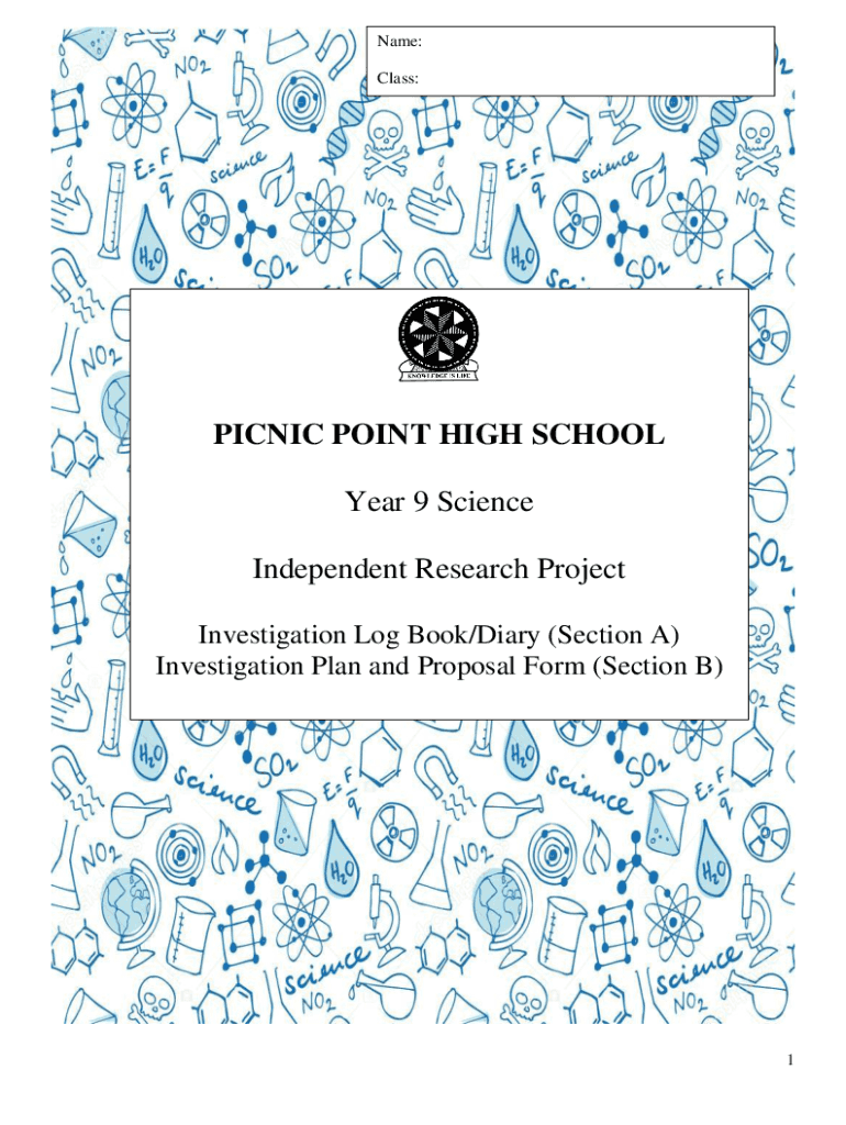 Name: Class:PICNIC POINT HIGH SCHOOL Year 9 Science Independent Research Project Investigation Log Book/Diary (Section A) Investigation Plan and Proposal Form (Section B)1INTRODUCTION This project